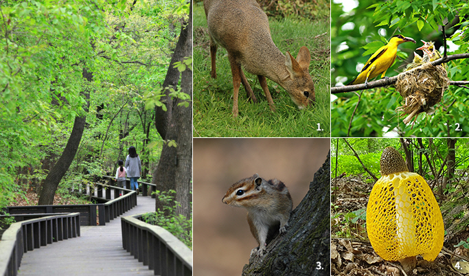 자연 관찰 기회: 동식물, 곤충들이 자연 속에서 활동하는 모습을 관찰할 수 있는 시설들이 마련되어 있습니다​​.