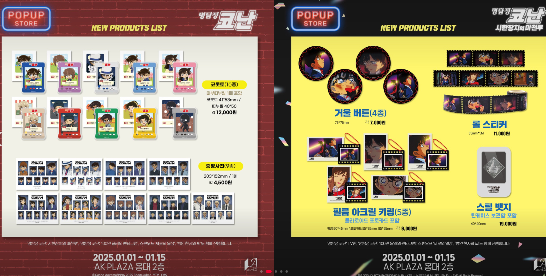 AK PLAZA 홍대 명탐정 코난 팝업 오픈 예정❗️ ⏰ 1/1(수)~1/15(수)✔️ AK PLAZA 홍대 2층(AKA BLANK 공간) 시한장치의 마천루, 100만 달러의 펜타그램, 제로의 일상, 범인 한자와씨 등 신제품을 AK 플라자