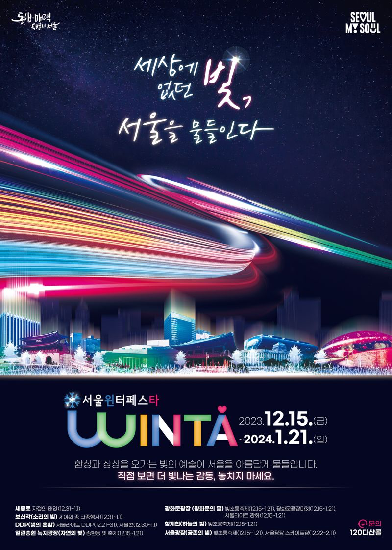이 축제는 빛과 예술의 독특한 조화를 통해 겨울 동안 서울을 매혹적인 볼거리로 만들어 줍니다.