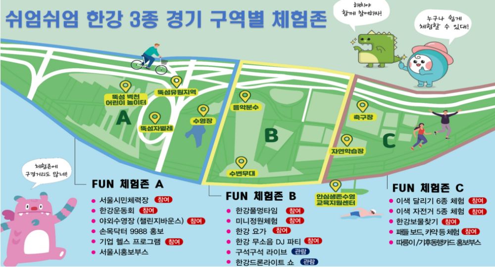 운동도, 축제도 쉬엄쉬엄 신나게 즐기는 제1회 쉬엄쉬엄 한강 3종 축제가 열립니다.